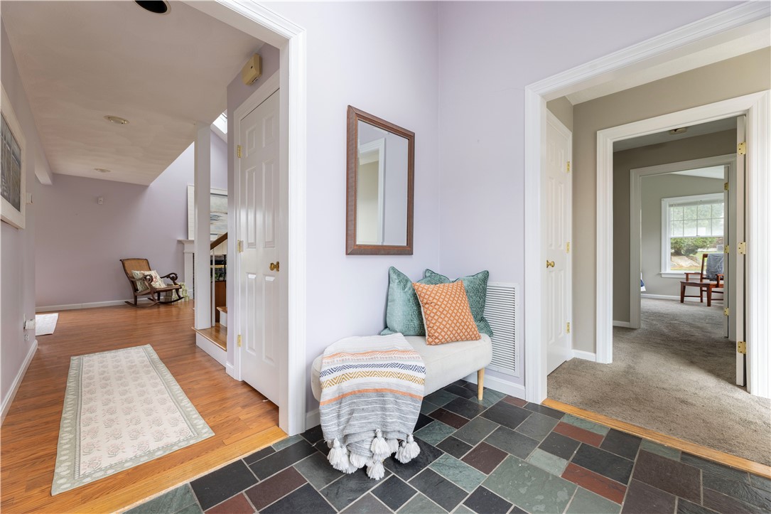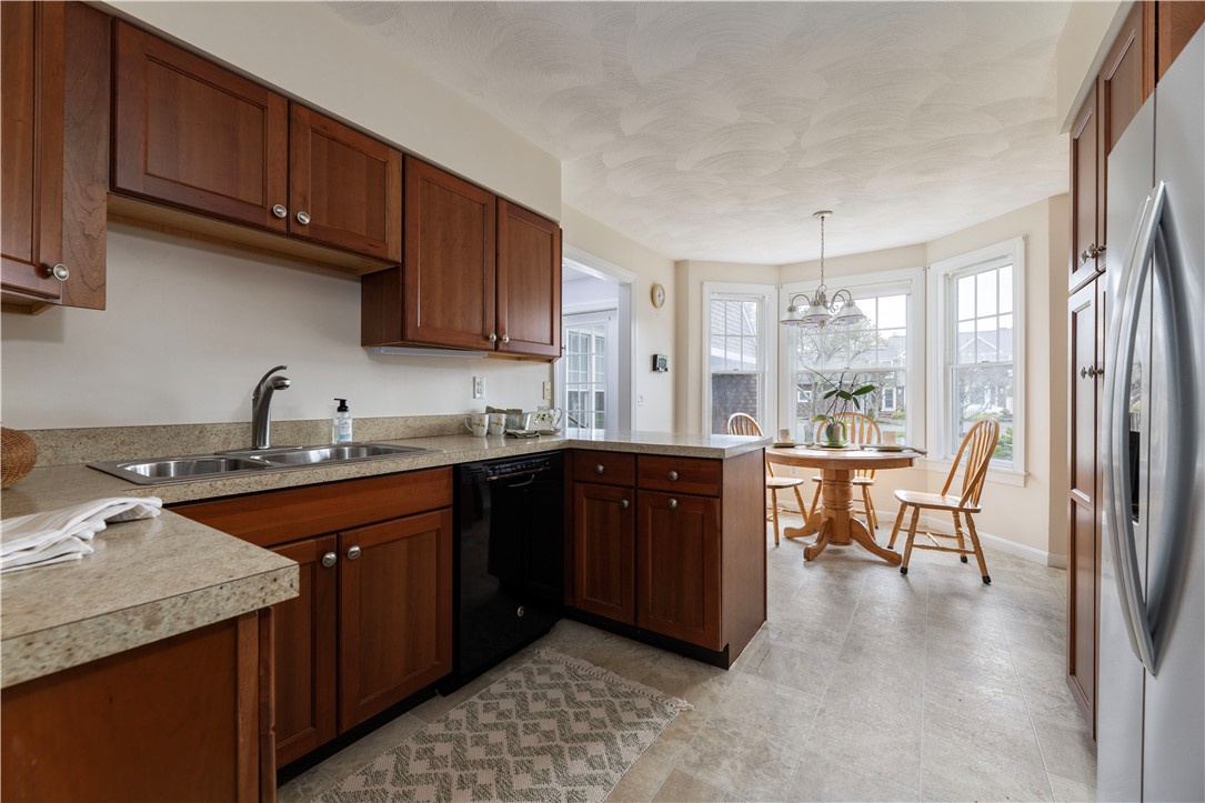 Welcome to Clark Farms, one of Narragansett's most desirable coastal communities where comfort meets seaside sophistication. This beautifully maintained condo offers the rare convenience of a first-floor primary suite and a two-car garage, a sought-after feature in this neighborhood. The exterior exudes timeless charm with vinyl pressed cedar shingles and a newer roof, blending classic coastal design with easy-care living. Inside, the layout invites effortless flow between the sun-filled living spaces, perfect for entertaining or unwinding after a day at the beach. The first-floor suite provides privacy and comfort, while the upper level offers additional space for guests or a home office. Step outside and enjoy walking distance to Scarborough Beach, where morning strolls and sunset walks await. Living in Narragansett means access to a vibrant mix of local restaurants, boutique shops, marinas, and year-round recreation from surfing and sailing to farmers' markets and coastal trails. Clark Farms offers a sense of community and ease, just minutes from everything that makes South County living so special. Whether it's a full-time residence or your weekend retreat, this home captures the relaxed, refined spirit of coastal Rhode Island living.