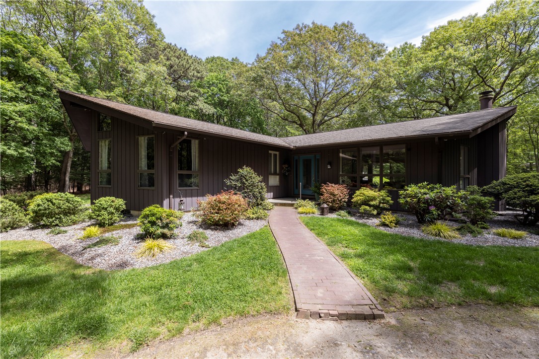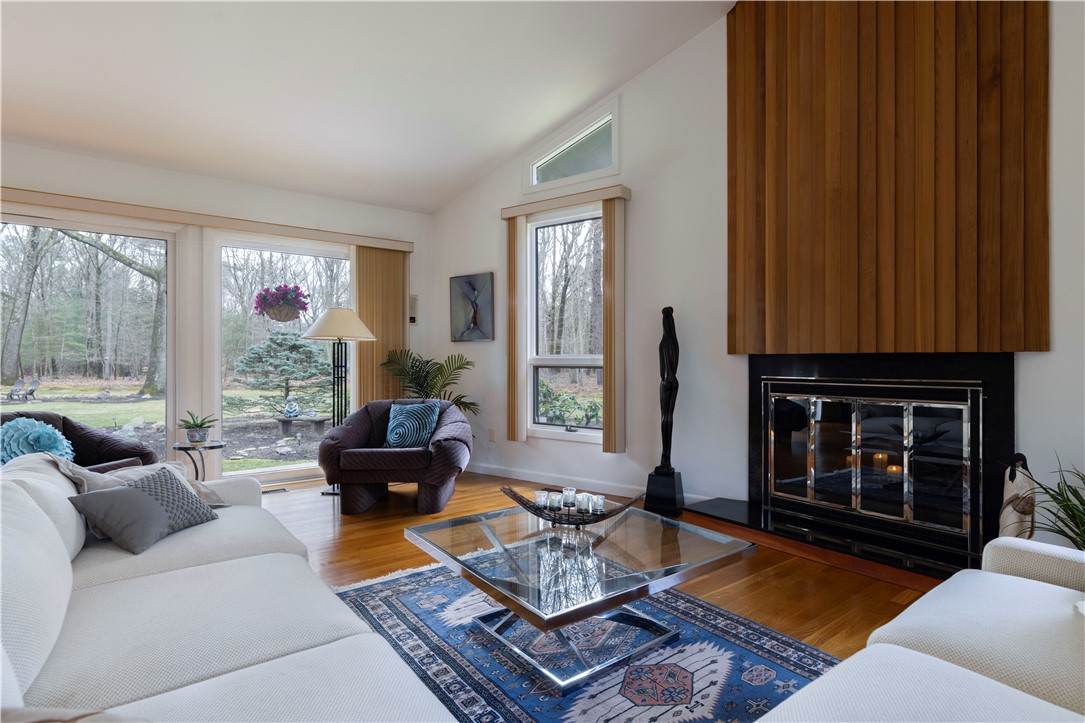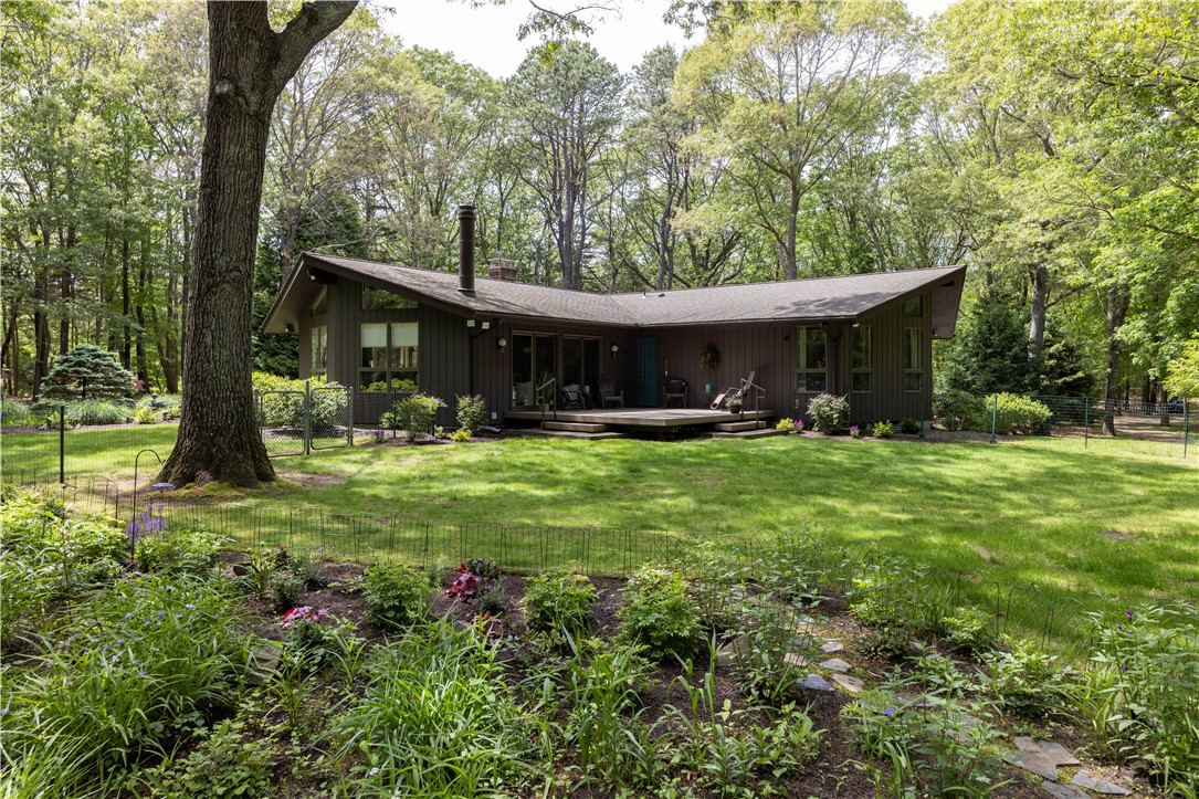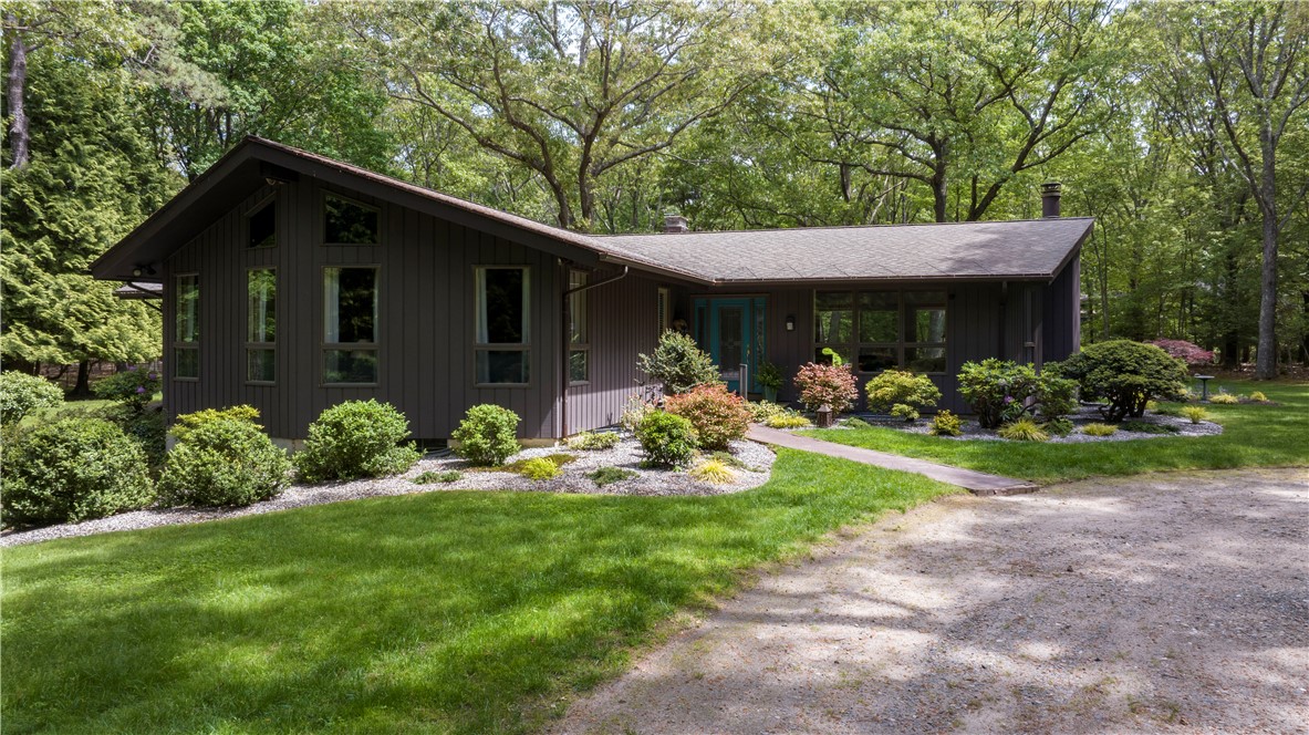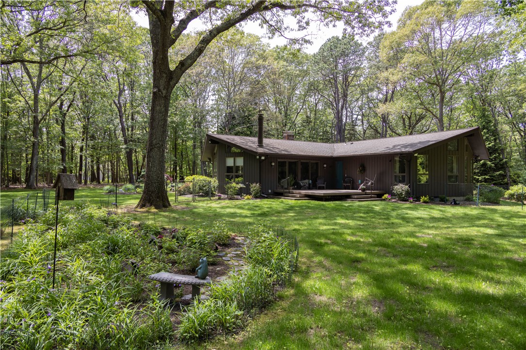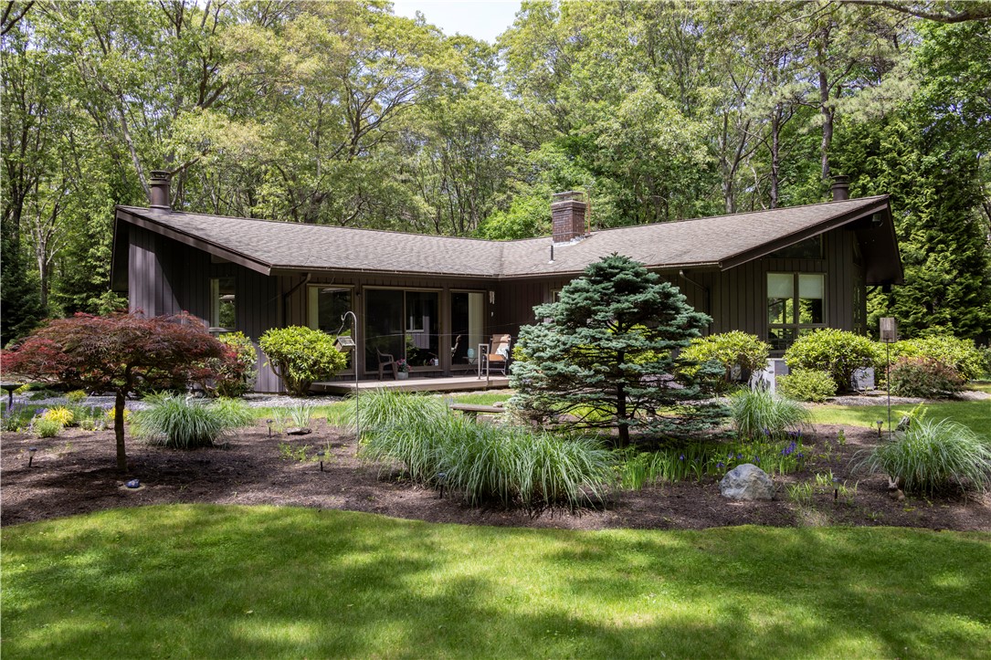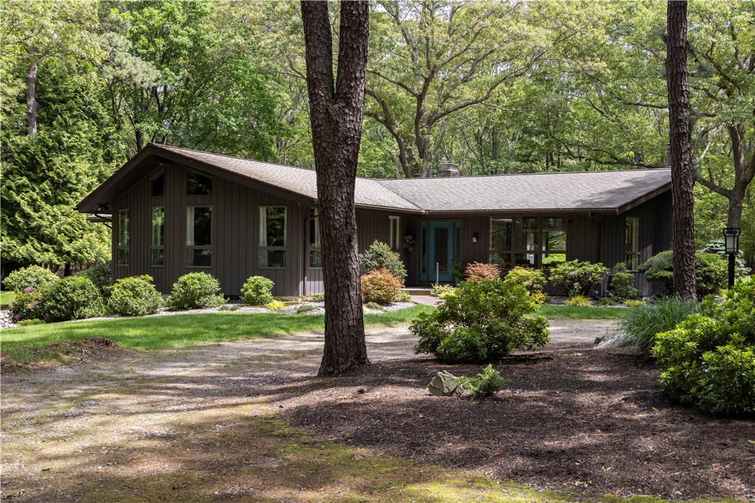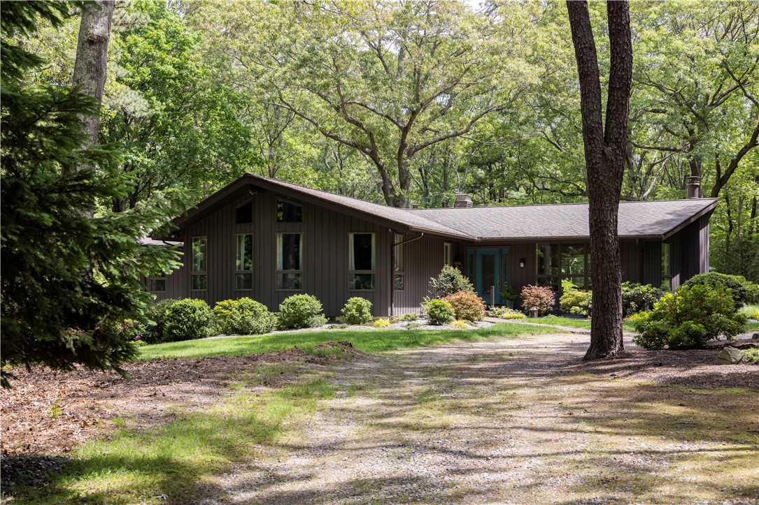 Tucked within the private seaside enclave of Pojac Point, is a one-of-a-kind, custom-designed home that tells a story as unique as its architecture. Built by its original and only owner, this mid-century modern retreat was inspired by the compass rose, with four distinct wings radiating from a central core to create a seamless blend of form, function, and light. Set on over 6 private acres, this one-level home offers a tranquil, estate-like setting surrounded by woodlands and coastal serenity. Step into the East Wing, where a formal living and dining room welcomes guests under soaring cathedral ceilings, anchored by a stunning wood-burning fireplace. To the North, the heart of the home beats warmly in a cozy family room and well-appointed kitchen, complete with a second fireplace perfect for quiet mornings or lively gatherings. The West and South Wings offer peaceful separation, with all bedrooms thoughtfully placed for privacy. The primary suite is generously sized, featuring a walk-in closet and spa-like bath. Large windows fill every room with light, creating a sense of calm and connection to the landscape. Downstairs, a walkout lower level adds flexibility with bonus space and a full in-law apartment ideal for guests or multigenerational living. In Pojac Point, residents enjoy privacy, natural beauty, and a strong sense of community all just minutes from the best of coastal Rhode Island. 48 Pojac Point Rd is a sanctuary crafted with care and ready for its next chapter.