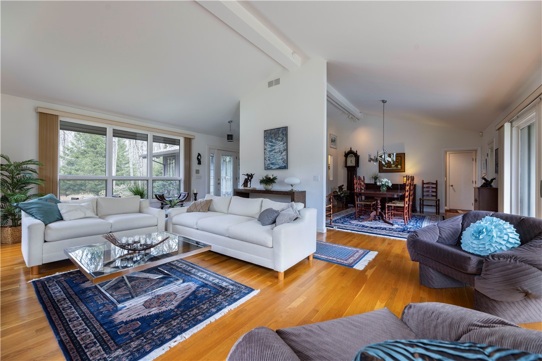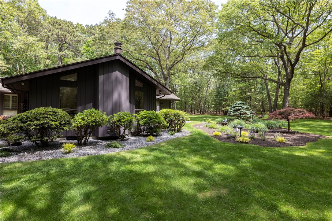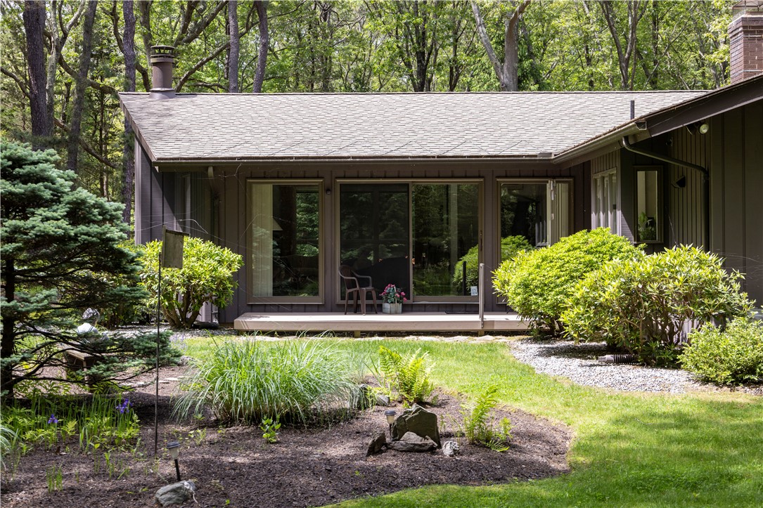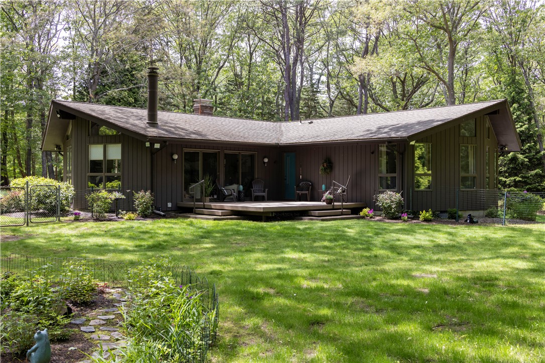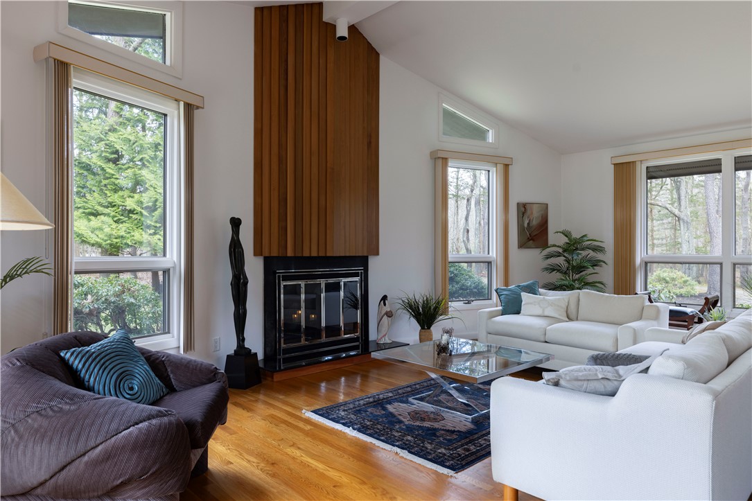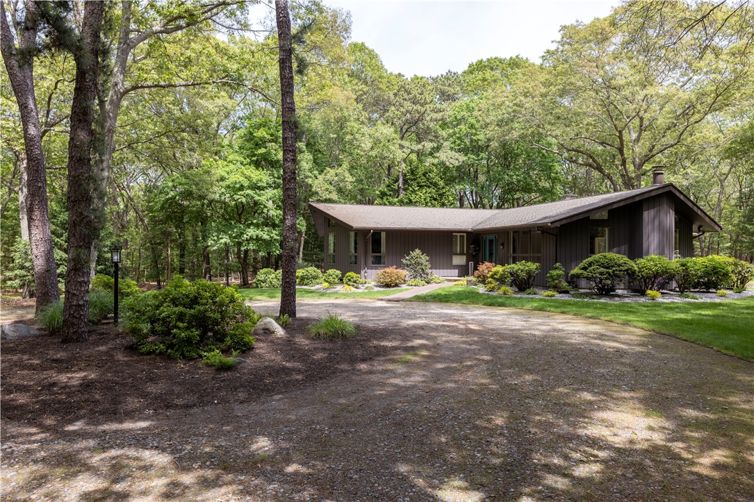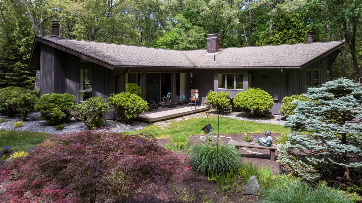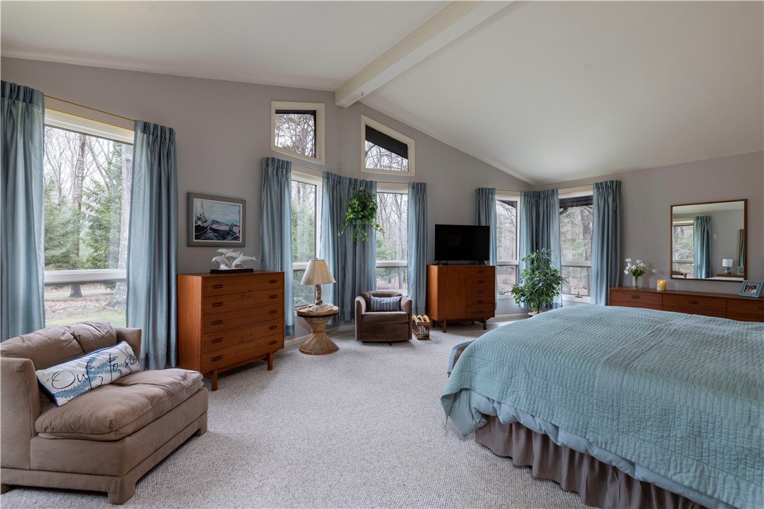 Tucked within the private seaside enclave of Pojac Point, is a one-of-a-kind, custom-designed home that tells a story as unique as its architecture. Built by its original and only owner, this mid-century modern retreat was inspired by the compass rose, with four distinct wings radiating from a central core to create a seamless blend of form, function, and light. Set on over 6 private acres, this one-level home offers a tranquil, estate-like setting surrounded by woodlands and coastal serenity. Step into the East Wing, where a formal living and dining room welcomes guests under soaring cathedral ceilings, anchored by a stunning wood-burning fireplace. To the North, the heart of the home beats warmly in a cozy family room and well-appointed kitchen, complete with a second fireplace perfect for quiet mornings or lively gatherings. The West and South Wings offer peaceful separation, with all bedrooms thoughtfully placed for privacy. The primary suite is generously sized, featuring a walk-in closet and spa-like bath. Large windows fill every room with light, creating a sense of calm and connection to the landscape. Downstairs, a walkout lower level adds flexibility with bonus space and a full in-law apartment ideal for guests or multigenerational living. In Pojac Point, residents enjoy privacy, natural beauty, and a strong sense of community all just minutes from the best of coastal Rhode Island. 48 Pojac Point Rd is a sanctuary crafted with care and ready for its next chapter.