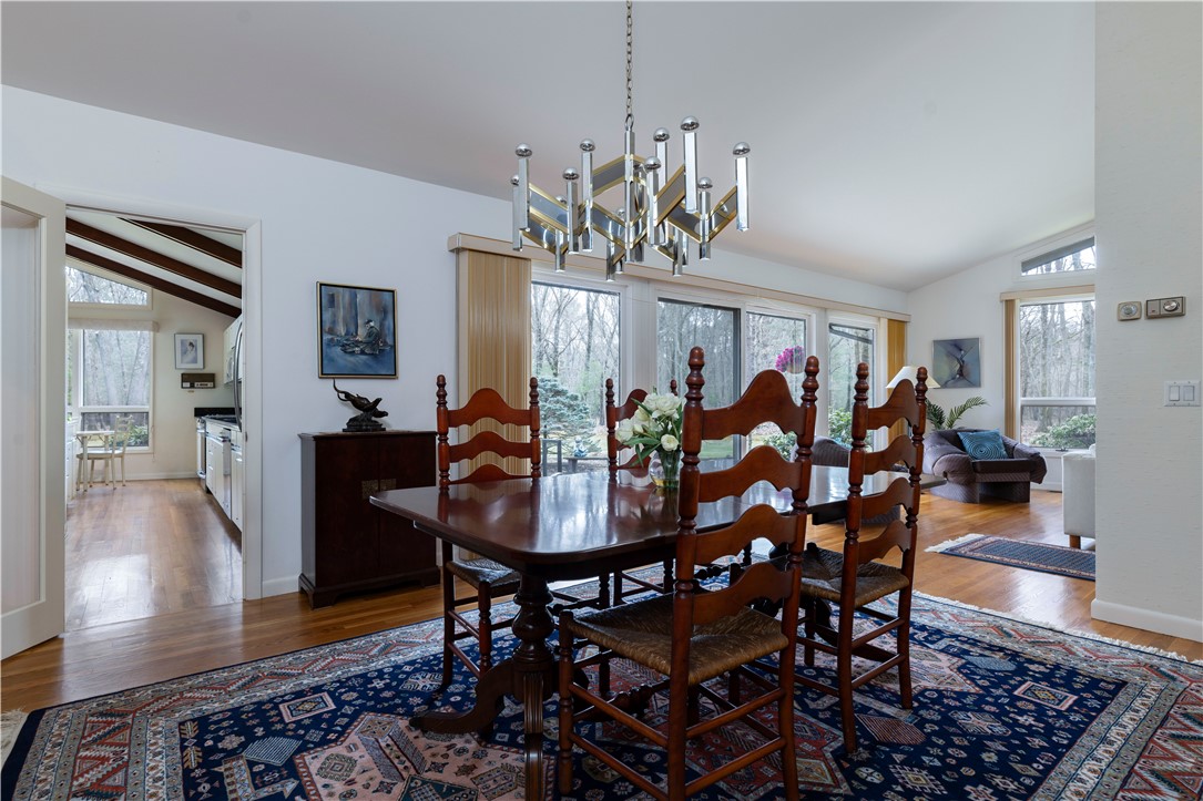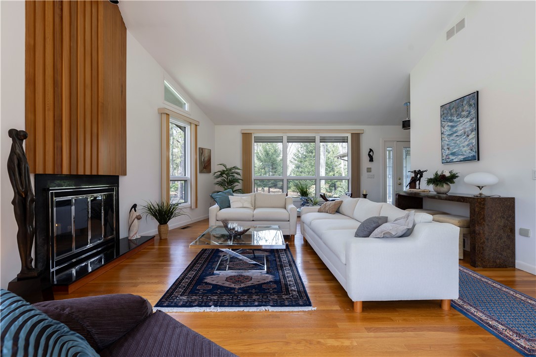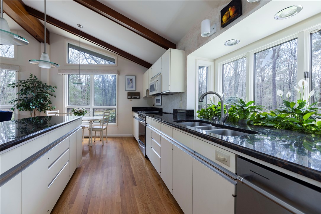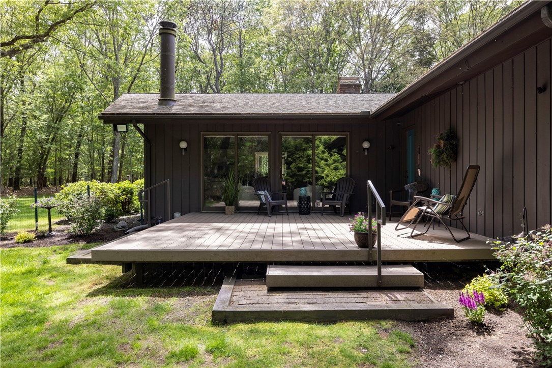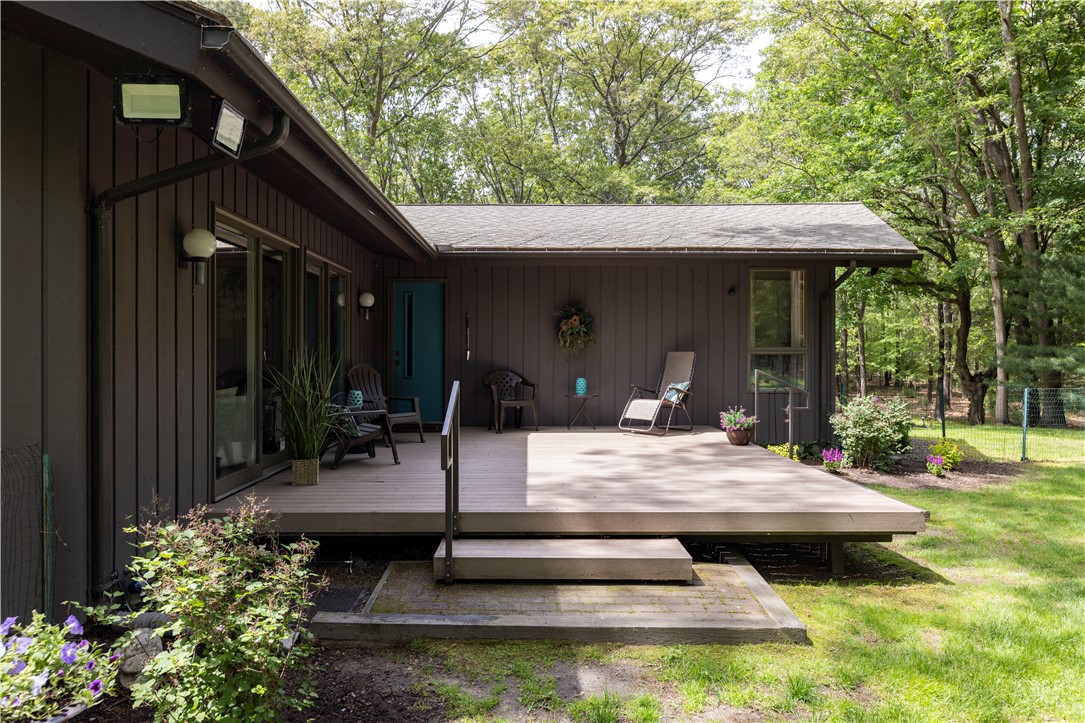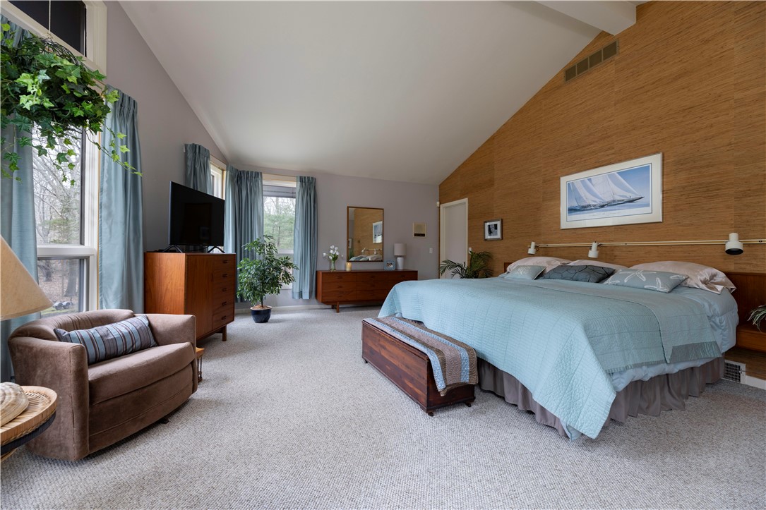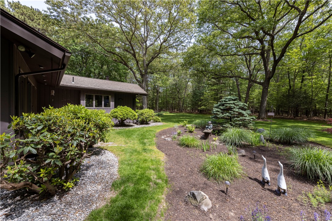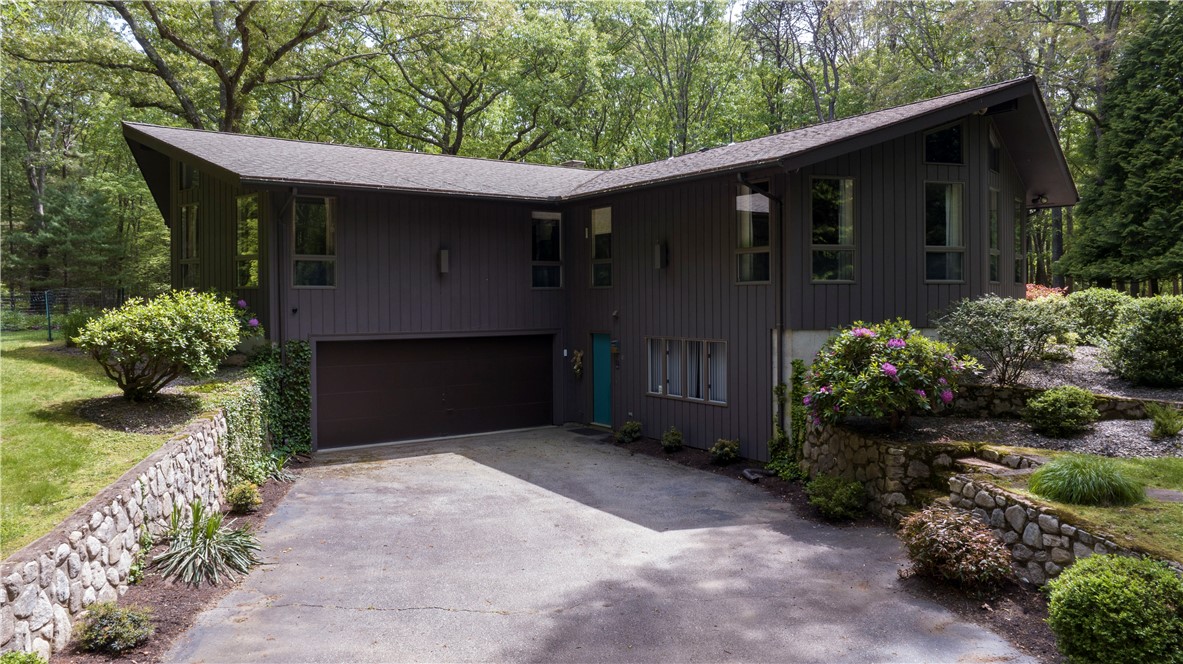 Tucked within the private seaside enclave of Pojac Point, is a one-of-a-kind, custom-designed home that tells a story as unique as its architecture. Built by its original and only owner, this mid-century modern retreat was inspired by the compass rose, with four distinct wings radiating from a central core to create a seamless blend of form, function, and light. Set on over 6 private acres, this one-level home offers a tranquil, estate-like setting surrounded by woodlands and coastal serenity. Step into the East Wing, where a formal living and dining room welcomes guests under soaring cathedral ceilings, anchored by a stunning wood-burning fireplace. To the North, the heart of the home beats warmly in a cozy family room and well-appointed kitchen, complete with a second fireplace perfect for quiet mornings or lively gatherings. The West and South Wings offer peaceful separation, with all bedrooms thoughtfully placed for privacy. The primary suite is generously sized, featuring a walk-in closet and spa-like bath. Large windows fill every room with light, creating a sense of calm and connection to the landscape. Downstairs, a walkout lower level adds flexibility with bonus space and a full in-law apartment ideal for guests or multigenerational living. In Pojac Point, residents enjoy privacy, natural beauty, and a strong sense of community all just minutes from the best of coastal Rhode Island. 48 Pojac Point Rd is a sanctuary crafted with care and ready for its next chapter.
