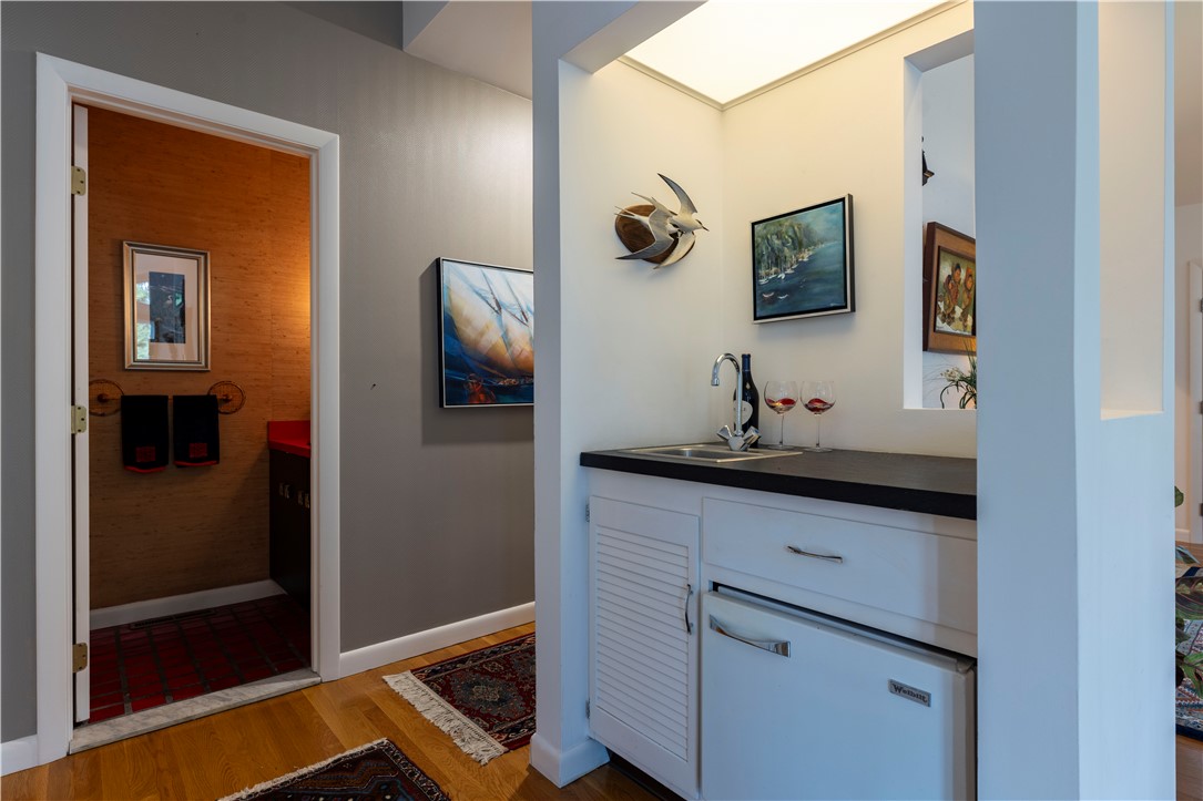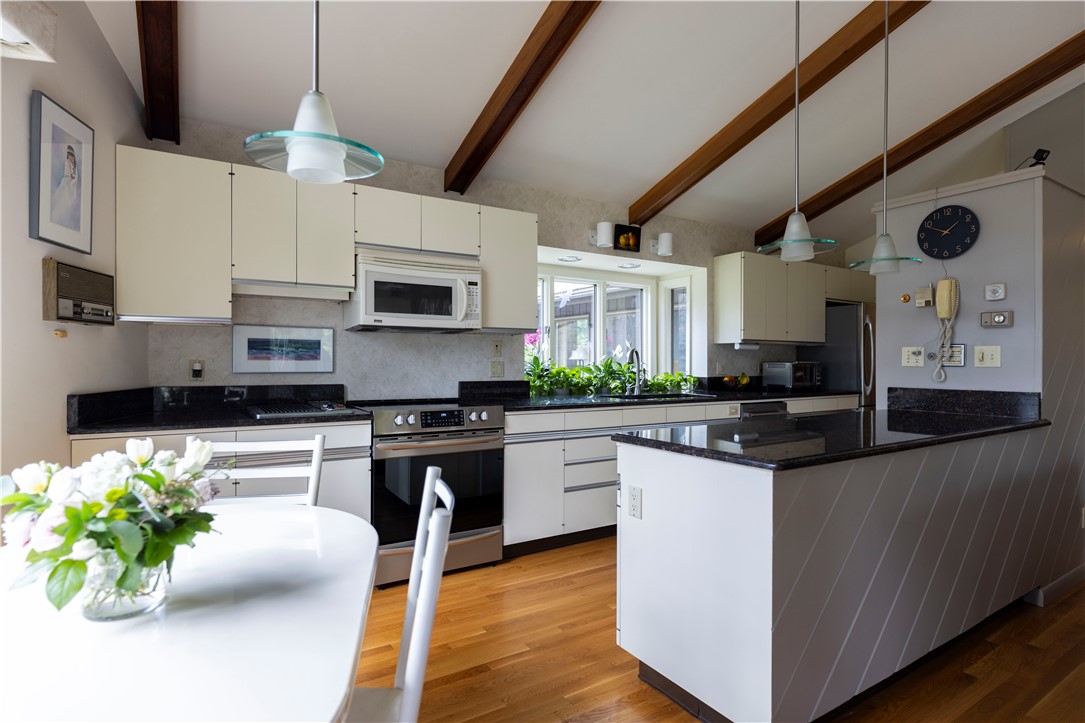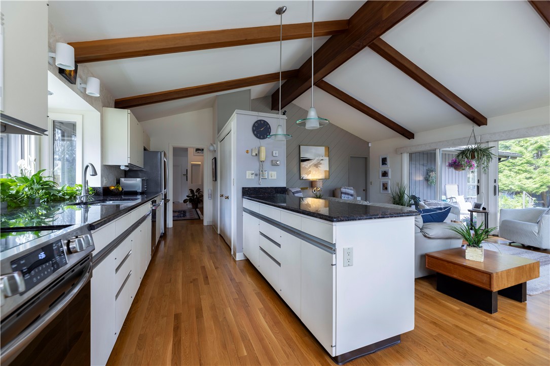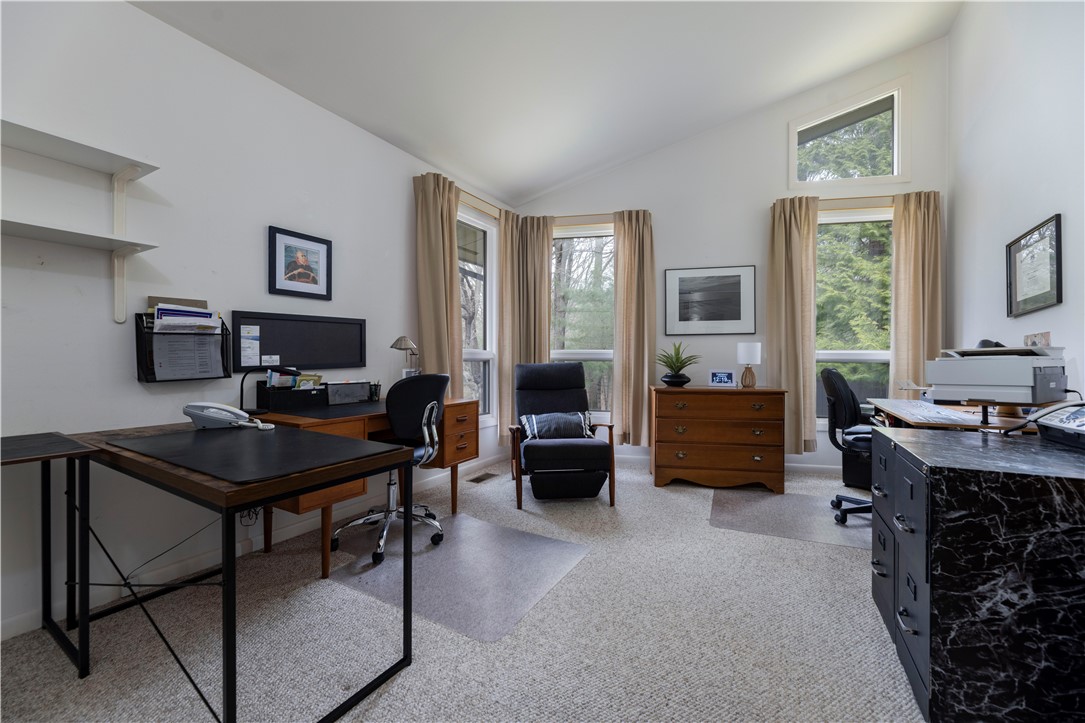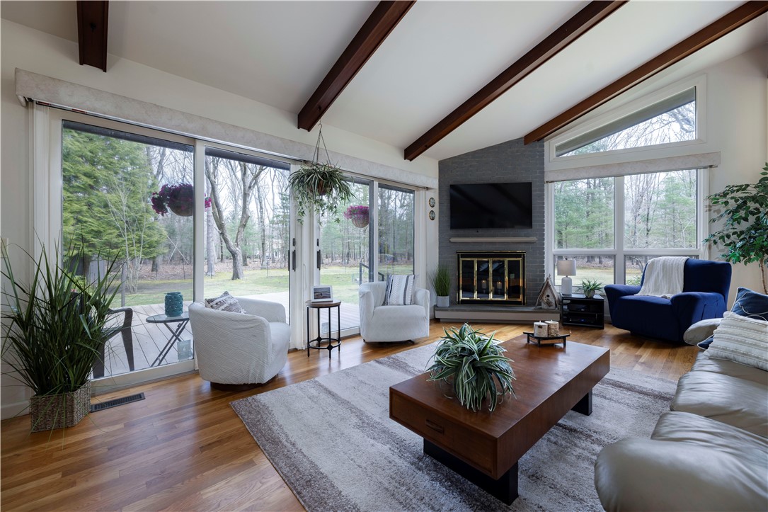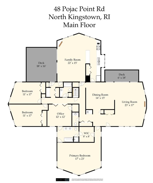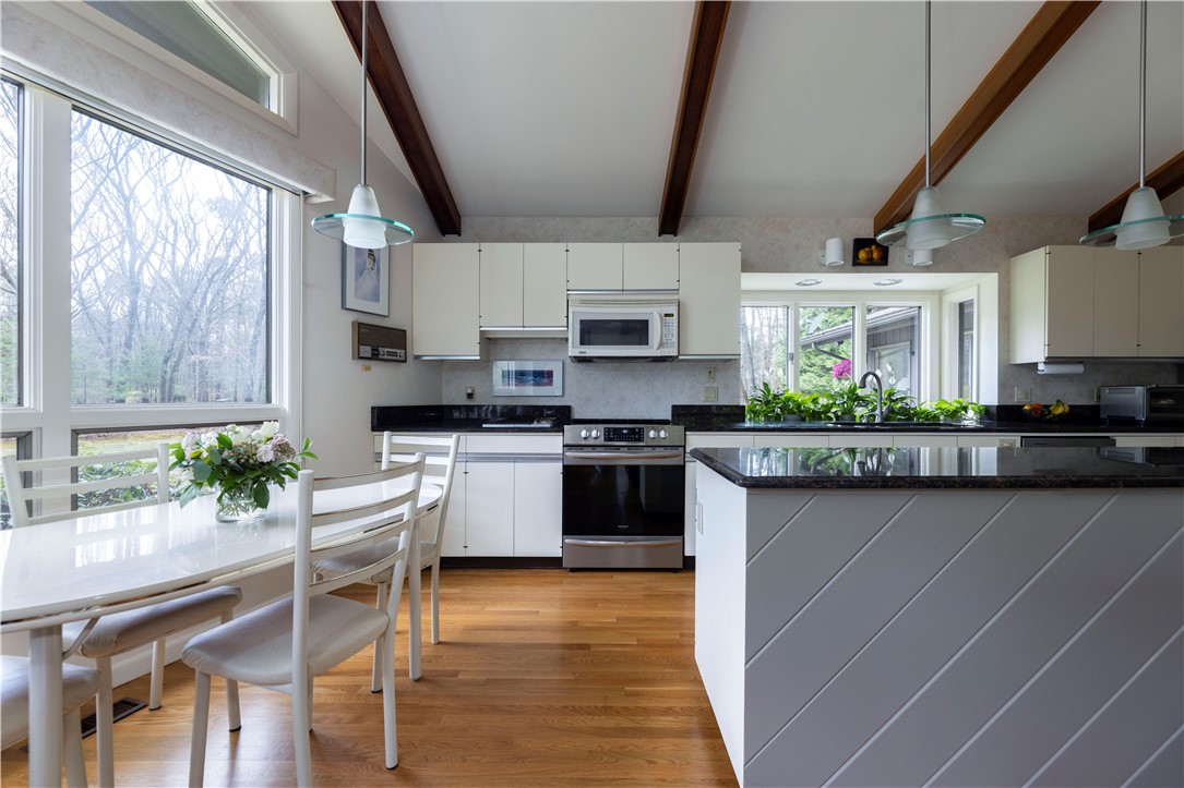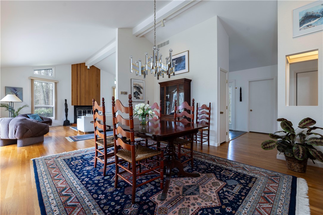 Tucked within the private seaside enclave of Pojac Point, is a one-of-a-kind, custom-designed home that tells a story as unique as its architecture. Built by its original and only owner, this mid-century modern retreat was inspired by the compass rose, with four distinct wings radiating from a central core to create a seamless blend of form, function, and light. Set on over 6 private acres, this one-level home offers a tranquil, estate-like setting surrounded by woodlands and coastal serenity. Step into the East Wing, where a formal living and dining room welcomes guests under soaring cathedral ceilings, anchored by a stunning wood-burning fireplace. To the North, the heart of the home beats warmly in a cozy family room and well-appointed kitchen, complete with a second fireplace perfect for quiet mornings or lively gatherings. The West and South Wings offer peaceful separation, with all bedrooms thoughtfully placed for privacy. The primary suite is generously sized, featuring a walk-in closet and spa-like bath. Large windows fill every room with light, creating a sense of calm and connection to the landscape. Downstairs, a walkout lower level adds flexibility with bonus space and a full in-law apartment ideal for guests or multigenerational living. In Pojac Point, residents enjoy privacy, natural beauty, and a strong sense of community all just minutes from the best of coastal Rhode Island. 48 Pojac Point Rd is a sanctuary crafted with care and ready for its next chapter.