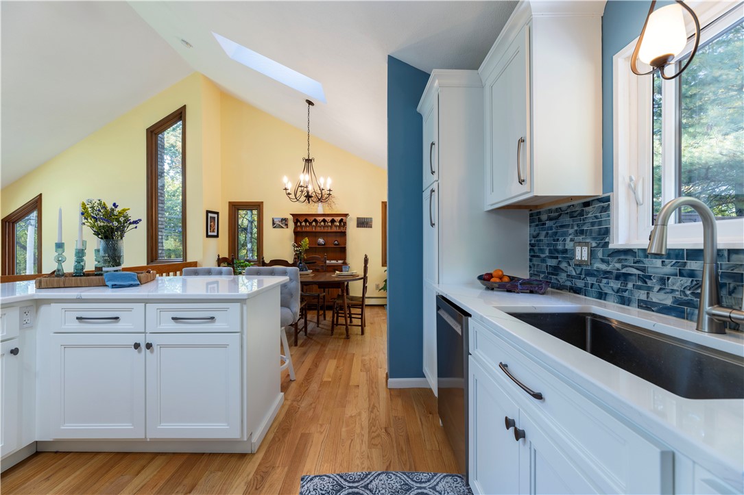 Set on nearly two acres of serene, park-like grounds, this sprawling four-bedroom, three-bath raised ranch beautifully balances modern design with multigenerational functionality. The main residence unfolds with a newly updated kitchen and dining area that flow effortlessly to a sunlit deck your summer entertaining hub complete with access to a pool area just waiting to be revived for next season. Vaulted ceilings, oversized windows, and a contemporary open layout create an airy ambiance throughout the main living spaces. The primary suite offers a private ensuite bath, joined by two additional bedrooms and a second full bathroom. On the lower level, a cozy family room with a wood-burning fireplace and a separate media room offer inviting retreats for cooler months. Step outside to the outdoor hot tub and soak beneath the stars after a long day. A true highlight of the property is the fully equipped in-law apartment with its own entrance, screened-in deck, and private outdoor space. Complete with a bedroom, den, living room, full bath, kitchen, and laundry, it's the ideal setup for guests, extended family, or independent living. Modern, versatile, and nestled in one of North Kingstown's most desirable settings 8 Robin Drive is the definition of comfort with sophistication.